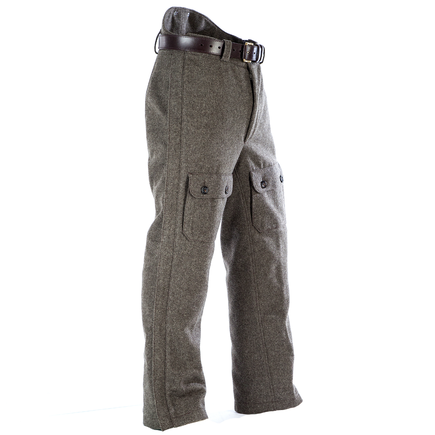 Paul & Kloosterhuis - Lodenhose - Winter-Ansitz-Hose: warme und geräuschlose Ansitz - Winter-Lodenhose aus robustem Militär Loden zum einfachen und schnellen Überziehen über die normale Jagdhose. Dank der durchgehenden Zwei-Wege-Reißverschlüsse an beiden Beinen lässt sich die Lodenhose schnell und bequem an- und ausziehen. Und das ganz ohne das mühsame Ausziehen von Jagdhose und Jagdstiefeln. Auch kann die Ansitz-Lodenhose problemlos mit Hosenträgern getragen werden - der aufwendig gearbeitete Bund hat hierfür zusätzlich angebrachte Horn-Knöpfe für die Befestigung von Hosenträger-Schlaufen. Der dicht gewebte Tuchloden ist warm und äußerst strapazierfähig. Und für den speziellen Einsatz als Winter-Ansitzhose - für langes Ausharren bei klirrender Kälte - ist die Winter-Lodenhose mit einem warmen Thermo-Steppfutter gefüttert. Durchdacht auch die zwei großen Fronttaschen: so finden diverse Jagd-Utensilien ihren Platz.