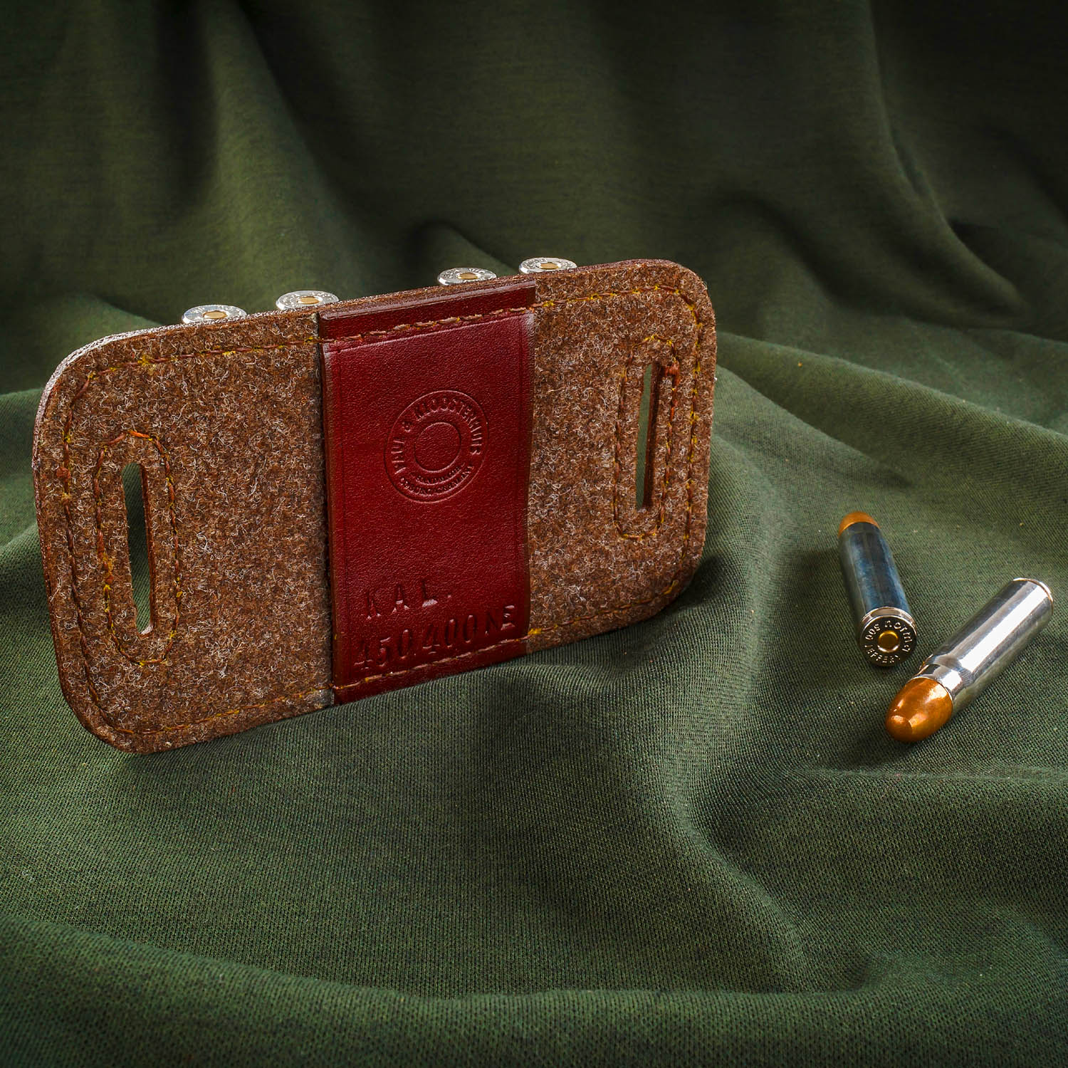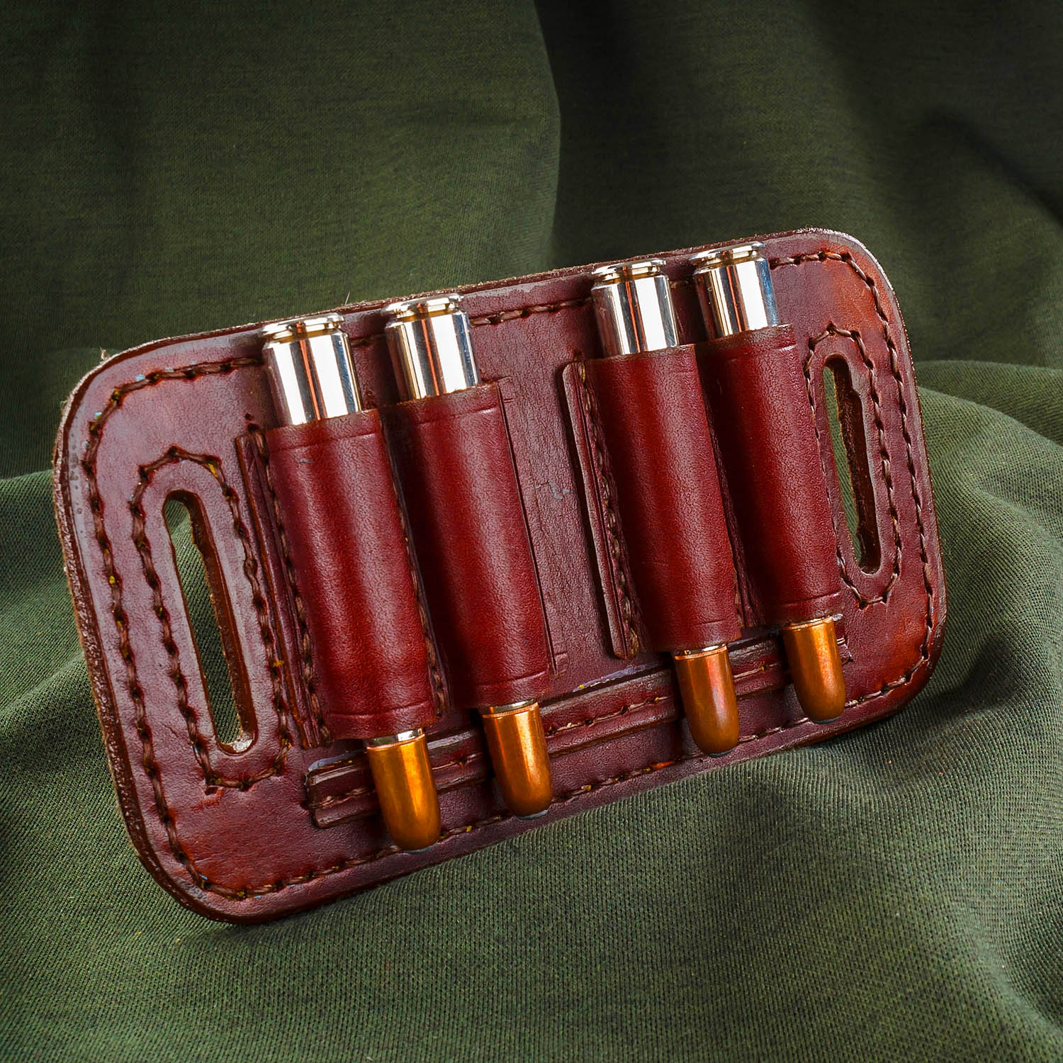 Paul & Kloosterhuis - Big-Game - Custom - Patronengurt - Side-By-Side - 4 x Round Bullet: exklusiver, komplett in Handarbeit gefertigter Patronengurt - Handmade in Coburg - für 4 x Big-Game - Großkaliber-Patronen - speziell für Side-By-Side-Doppelbüchsen.